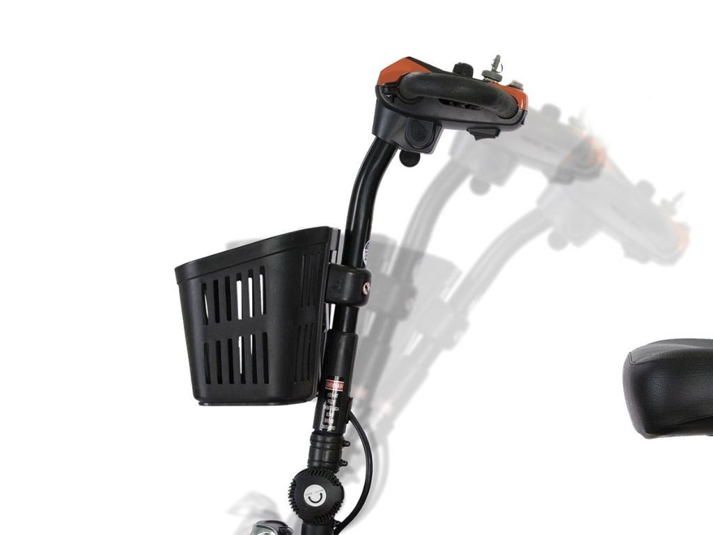 O váš komfort se postará polstrované sedadlo, které je otočné o 360°, dopředu sklopné opěradlo, šířkově nastavitelné područky nebo řídítka s nastavitelným sklonem. To vše je navíc doplněno zpětnými zrcátky pro dobrou orientaci a praktickým předním košíkem, do kterého můžete vložit všechny nezbytné věci.