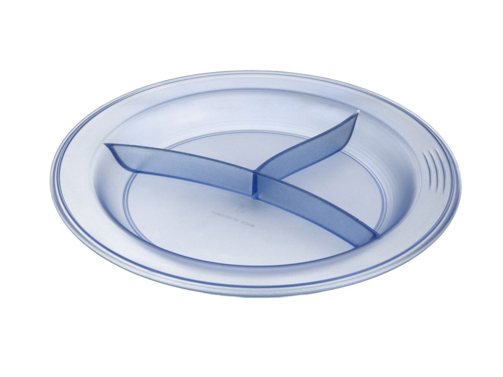 Talíře ze zdravotně nezávadného plastu s protiskluzovou úpravou nožiček. Talíře je rozdělen na tři oddíly.