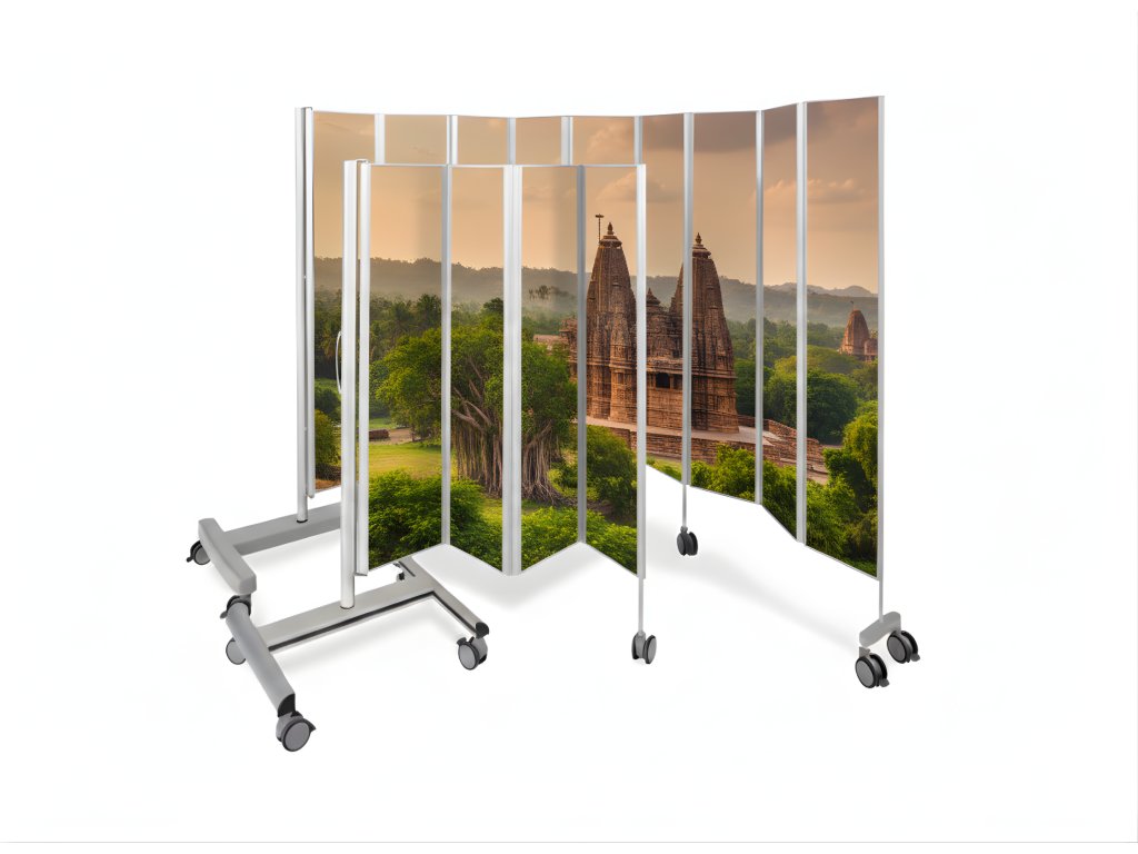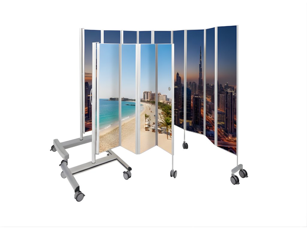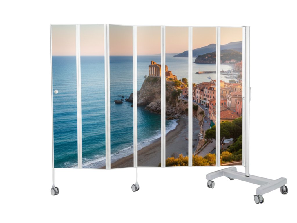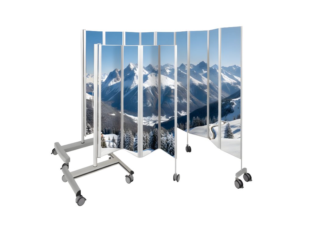 V základní variantě je paraván možný připevnit pouze ke stěně. V případě potřeby mobilního paravánu je možné dokoupit pojízdný stojan (není součástí skládací zástěny).