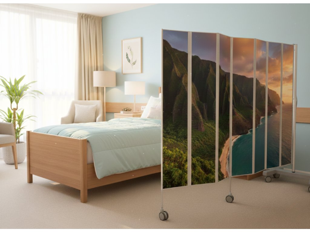 - Oddělení dvou postelí a pacientů pomocí skládacích zástěn trvá jen několik sekund.